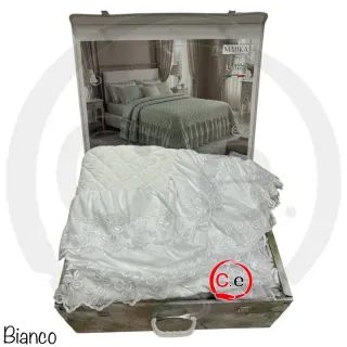 Modello Venezia Coconuda ricamata con pizzo rebrodè & 2 cuscini arredo coordinati Colori disponibili: • Panna • Cipria • Bianco • Azzurro • Tortora • Petrolio • Grigio Matrimoniale misura 260x270cm Prodotto italiano 🇮🇹 Trapuntino matrimoniale; In scatola € 75,00 In busta € 69,99 Trapunta invernale in busta € 74,99