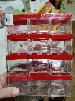 Scatoline in plastica stile lego, si possono usare anche come portaconfetti. . Colore rosso. 5 cm per lato. Sono 24 pezzi Possibilità di vendita di tutti i colori insieme. Nuove ancora imbustate
