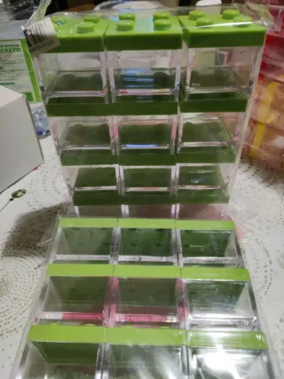Scatoline in plastica stile lego, si possono usare anche come portaconfetti. . Colore verde. 5 cm per lato. Sono 24 pezzi Possibilità di vendita di tutti i colori insieme. Nuove ancora imbustate