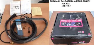 Torcia di saldatura Abicor Binzel 706.4037 ad inverter per realizzare saldature con gas Argon. Metri 4 corredata di quattro punte di scorta. Materiale usato pochissime volte tutto perfettamente funzionante.