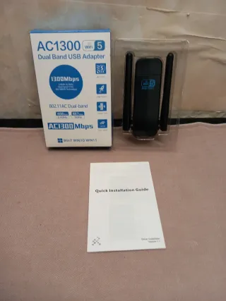 Adattatore USB Dual Band WiFi 5 AC1300. - Velocità fino a 1300 Mbps. - Supporta 802.11AC Dual-band. - Compatibile con Windows 7, 10, 11.