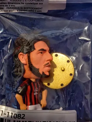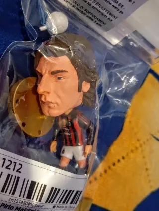 Miniatura di un calciatore con la maglia dell'AC Milan. La figura è in plastica e presenta dettagli del giocatore.
