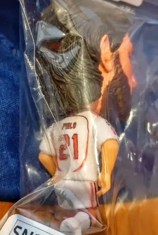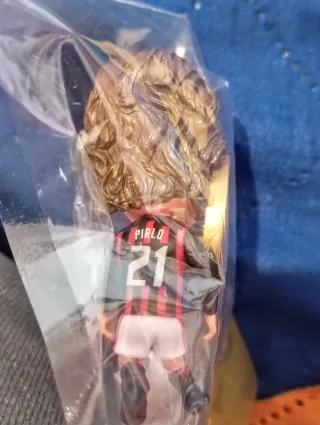 Miniatura da collezione di un calciatore del Milan, raffigurante Pirlo. La base è dorata.