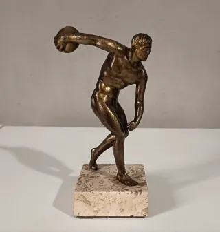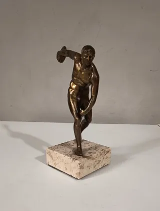 Iconica scultura artistica vintage in bronzo patinato "Discobolo"su base in marmo,impatto classico -olimpico Famosa opera d'arte originariamente creata dallo scultore greco Mirone 450 A.C. Una delle opere più famose dell'antica Grecia Posa atletica ed espressiva Scultura d'arte classica di grande impatto visivo Normale segno del tempo Ottime condizioni come da foto Misure Altezza cm 20 Base cm 8x8 N.B. Valuto eventuali offerte