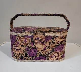 Elegante cesto per riporre i tuoi accessori da cucito. Presenta un grazioso motivo floreale e dettagli in pizzo. Stupendo oggetto vintage,adatto anche come portaoggetti. - Tessuto in raso con stampa floreale. - Bordatura in pizzo decorativo. - Manico imbottito per un trasporto confortevole. Splendide condizioni Integro Misure Larghezza cm 22x15 Altezza cm 13 circa
