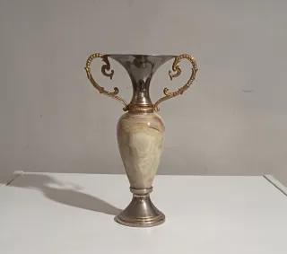 Vaso/Anfora vintage marmo Onice e metallo - 23 cm
