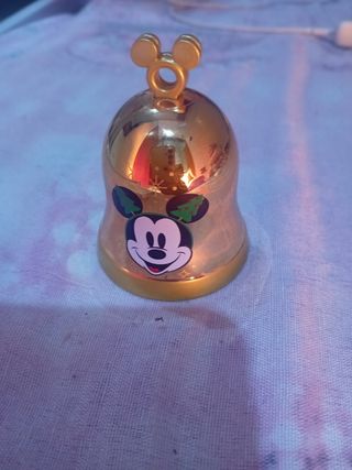 Campanella dorata con decorazioni di Topolino. - Design a forma di campana. - Colore oro brillante. - Immagine di Topolino sul corpo della campana.
