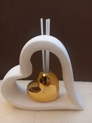 Set di due profumatori per ambienti realizzati in ceramica bianca, con un design a forma di cuore formato da mani. - Design a forma di cuore. - Materiale: ceramica bianca.