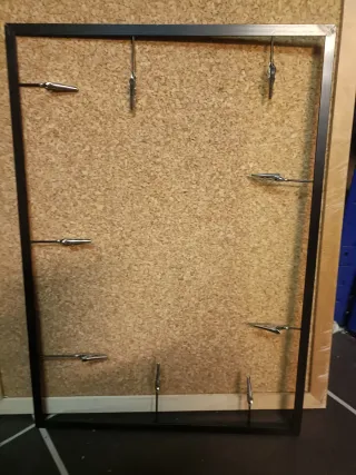 Cornice portafoto in metallo nero con clip. - Struttura rettangolare. - Clip metalliche per appendere foto o ricordi. Senza sfondo