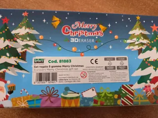 Confezione di 5 gomme da cancellare a tema natalizio. - Design festivo con Babbo Natale, renna, pupazzo di neve, albero e omino di pan di zenzero. - Ideali per la scuola o come piccolo pensiero. - Nuove e mai usate.