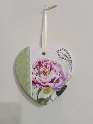 Decorazione cuore in ceramica con peonia Misure 10x10