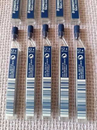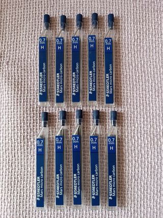 10 confezioni di micromine 07 mm gradazione H. Ogni confezione contiene 12 micromine. Staedtler