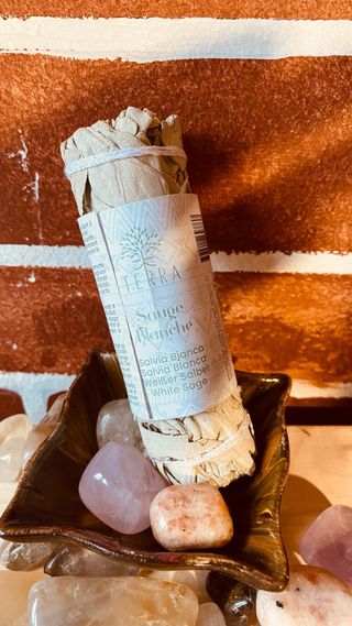 Mazzetto di erbe essiccate, profumato e decorativo. - Erbe: Salvia Bianca e Cedro. - Brand: Terra. - Fragranza: Hibiscus.