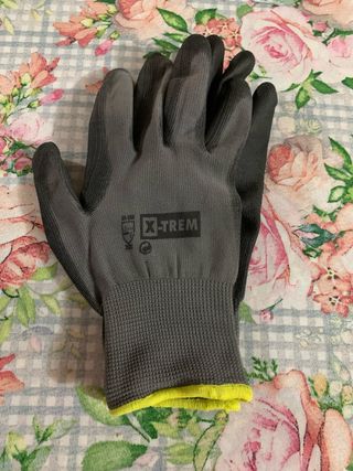 Guanti da lavoro resistenti e confortevoli. - Colore grigio con polsino giallo. - Logo X-TREM stampato.