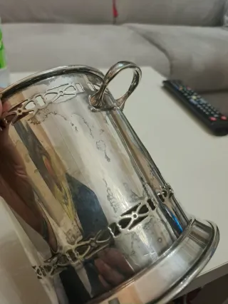 Elegante porta champagne in metallo, perfetto per ogni occasione speciale. Porta bottiglia da scrivania BAGNATO/argento. 14 x 14. In buono stato come da foto - Design classico con manici laterali. - Finitura lucida e dettagli traforati.