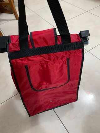 Borsa shopper di colore rosso con pratici manici neri. - Materiale in tessuto. - Chiusura con bottone a pressione. - Dettagli in tessuto nero.