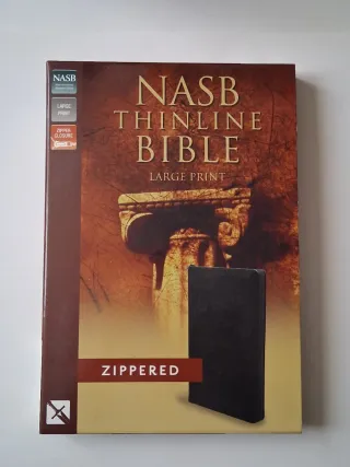 Bibbia NASB Thinline in edizione Large Print con chiusura a cerniera. - Copertina con chiusura a zip. - Testo Large Print per una lettura agevole. - Edizione NASB (New American Standard Bible).