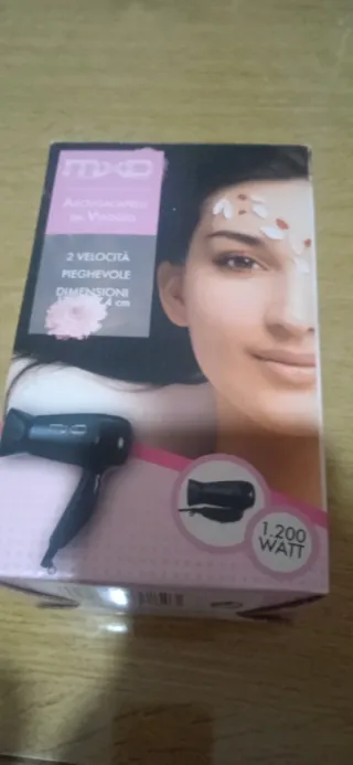 Asciugacapelli compatto e pieghevole, perfetto da portare in viaggio. - 2 velocità - Pieghevole - Dimensioni: 17x12x4 cm - Potenza: 1200 Watt
