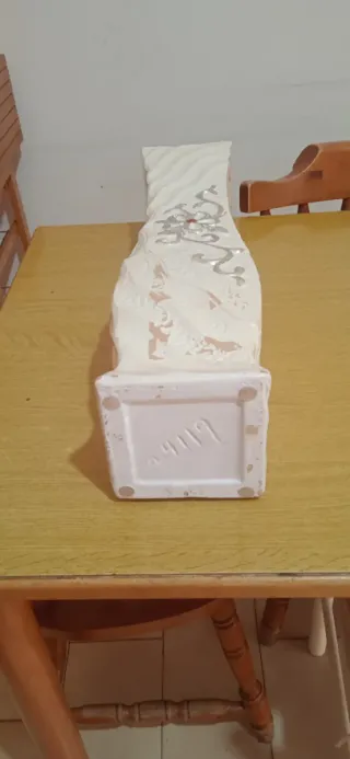 Elegante vaso decorativo in ceramica bianca, perfetto per aggiungere un tocco di stile alla tua casa. Presenta un design a coste verticali e decorazioni floreali in rilievo con dettagli argentati. - Colore: Bianco e argento - Materiale: Ceramica - Decorazioni: Floreali in rilievo
