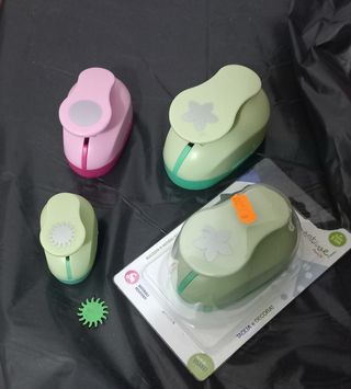 Vendo fogli grandi di vari colori di gomma eva (o fommy) ,2 fora buchi,accessori per fare braccialetti o collane,formine, metà scatola di chiodini e 4 perforatrici decorative. Vendo anche molte perline e accessori per creare orecchini. Vendo tutto insieme o separati.