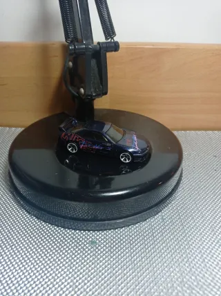 Modellino della Hot Wheels Nissan Skyline GT-R R33. Un'iconica auto sportiva in scala ridotta. - Colore blu scuro. - Dettagli grafici rossi e viola sulle fiancate e sul tetto. - Spoiler posteriore.