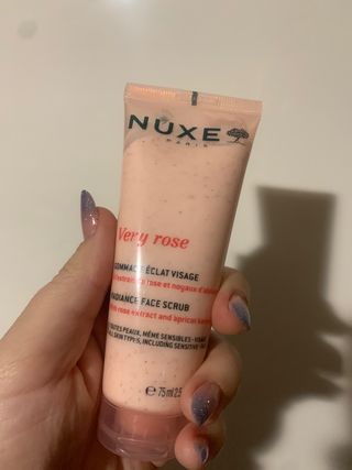 Scrub viso Nuxe Very Rose, ideale per illuminare la pelle. - Formato: 75 ml - Texture con estratti di rosa e noccioli di albicocca - Adatto a tutti i tipi di pelle, anche sensibili