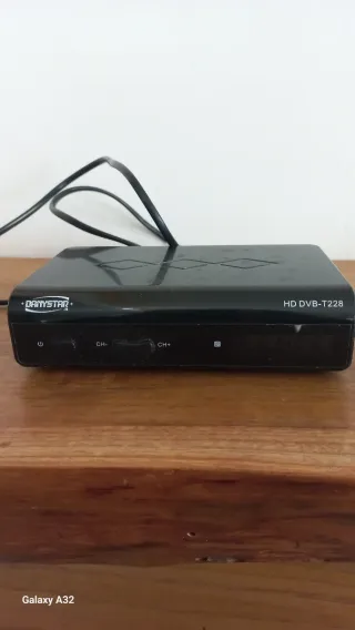 #Decoder digitale terrestre Danystar HD DVB-T228 • Questo tipo di dispositivo è utilizzato per ricevere i canali televisivi che trasmettono con il nuovo standard DVB-T2 HEVC. • I pulsanti visibili sul frontalino includono l'accensione (power) e i selettori di canale (CH- e CH+). • È un accessorio utile per aggiornare i televisori più datati che non sono nativamente compatibili con il nuovo standard di trasmissione digitale terrestre.