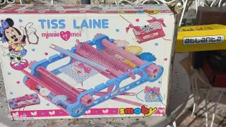 #Telaio per tessere la lana "Minnie et moi" prodotto da Smoby, con illustrazioni del gioco e di Minnie Mouse. Personaggio: Minnie Mouse (Disney). Età consigliata: A partire dai 6 anni. - Struttura rosa e blu. - Include accessori per tessere.