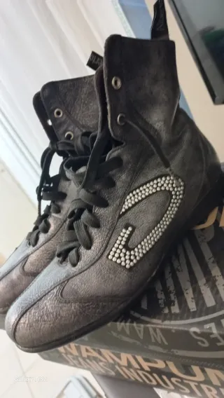 Eleganti scarponcini Alberto Guardiani in una tonalità grigio-argento. Perfetti per completare un look. - Design alto alla caviglia. - Dettagli decorativi con borchiette sul lato. - Chiusura con lacci neri.