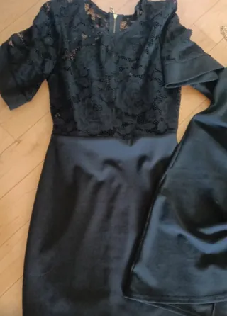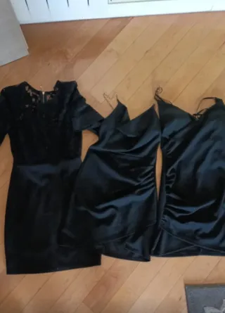 Set di tre abiti eleganti. - Abito con maniche corte in pizzo e zip posteriore. Taglia unica - Abito con spalline sottili e drappeggio. Taglia s/m - Abito con spalline e dettaglio incrociato. Taglia m