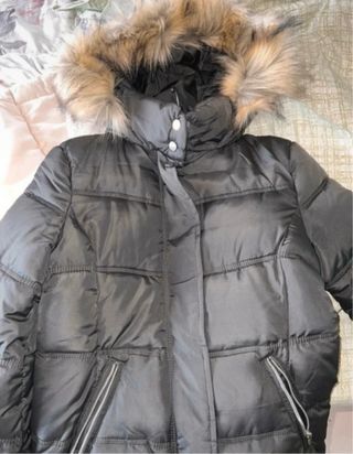 Elegante giubbotto da donna con cappuccio. - Dettaglio in pelliccia sintetica sul cappuccio. - Chiusura frontale con zip e bottoni. - Tasche laterali con zip.