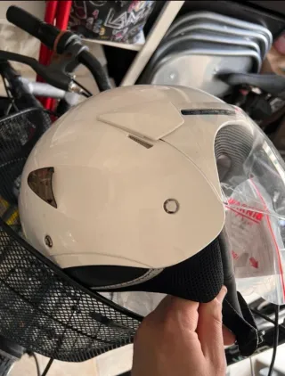 Casco modello Jet, taglia M (circonferenza cranica 57-58 cm). - Colore bianco lucido. - Visiera trasparente. - Interno imbottito. - Prese d'aria laterali. In condizioni estetiche e funzionali molto buone, usato solo due volte. Viene fornita una nuova visiera di ricambio. Trattasi di articolo usato che riporta leggeri segni d'uso che non inficiano la sua estetica. Le foto sono parte integrante della descrizione.