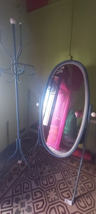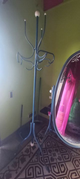 Specchio e attaccapanni in metallo azzurro. - Struttura in metallo resistente in ottime condizioni.