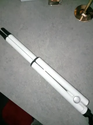 Piastra per capelli versatile che funziona sia come arricciacapelli che come piastra lisciante. - Design elegante in bianco e nero. - Indicatore di calore visibile.