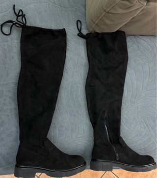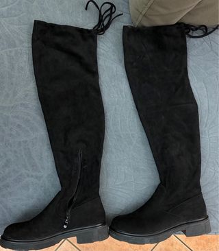 Stivali alti in camoscio nero. - Materiale scamosciato. - Zip laterale. - Laccio regolabile sul bordo superiore.