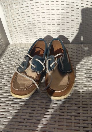 Vendo mocassini timberland da uomo, numero 41, in pelle e camoscio, usati un paio di volte e in buone condizioni. Presentano soltanto una leggera scoloritura della linguetta blu, visibile in foto.