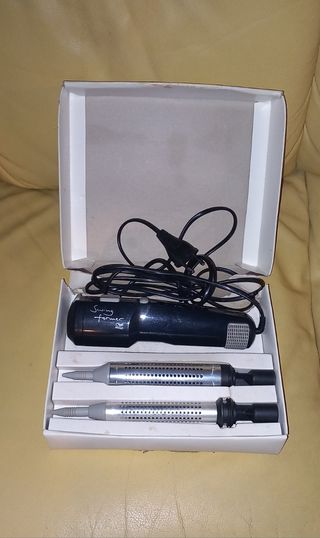 Vendo spazzola modellante Swing Former vintage, per la cura dei capelli. Funzionante e completa di scatola originale (rovinata, come si può vedere dalla foto) e accessori. Combina la funzione di asciugacapelli e spazzola modellante, per creare onde e ricci. Essendo un modello vintage, non presenta le moderne tecnologie come gli ioni o la ceramica, ma si basa solamente sul flusso di aria calda. Per altre informazioni, foto o video per vedere il funzionamento, contattatemi