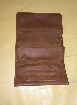 Vendo porta tabacco in pelle, usato ma in buone condizioni generali. La fodera interna non presenta strappi, ma solo una leggera macchia sul tessuto interno alla cerniera.