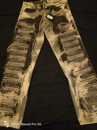Jeans da uomo con un design unico e audace. - Effetto strappato e scolorito. - Vestibilità comoda.