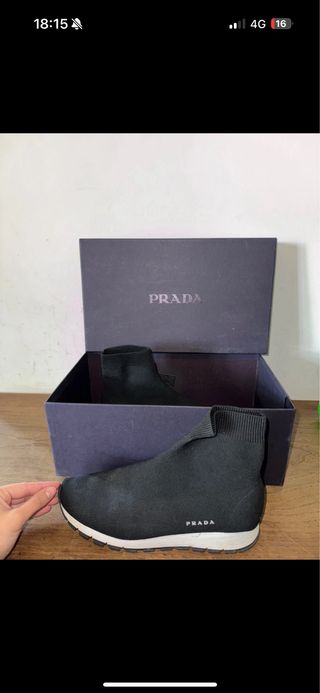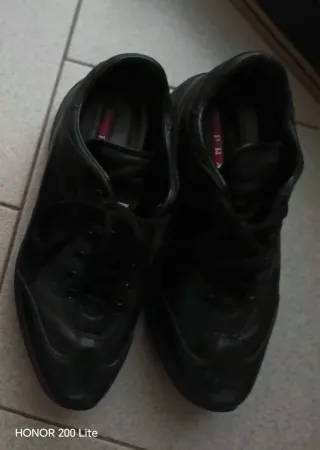 Eleganti scarpe Prada in pelle nera e gilet tg. 42 - Design classico con lacci. - Dettaglio logo sulla soletta.
