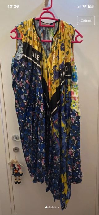 Vestito originale Balenciaga con una stampa floreale vivace. - Design senza maniche. - Scollo a V. - Tessuto leggero e fluido.
