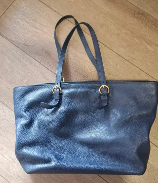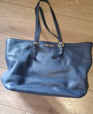 Borsa shopper Miu Miu in pelle blu. - Materiale: pelle martellata. - Dettagli in metallo dorato. - Manici regolabili con fibbia.