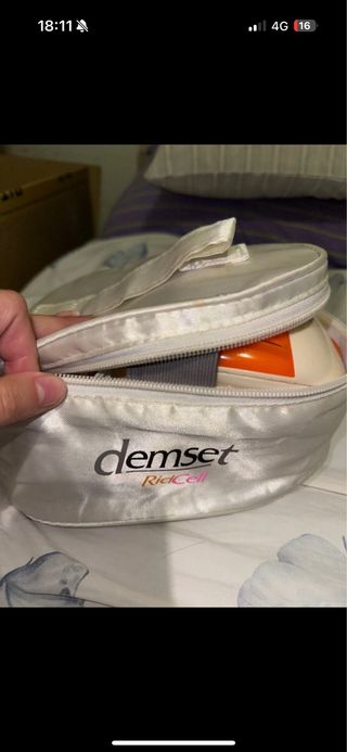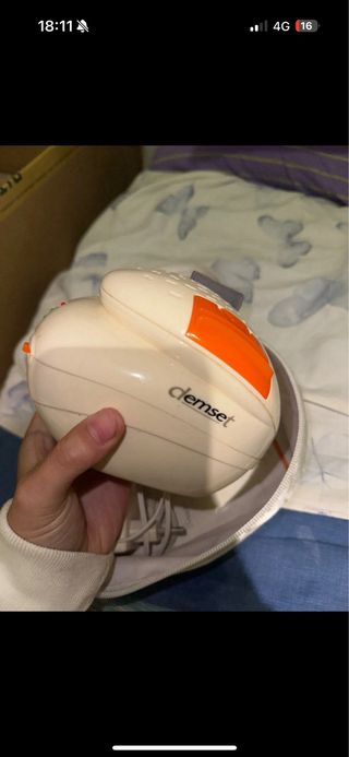 Massaggiatore portatile per il trattamento della cellulite. - Design compatto e facile da trasportare. - Colore bianco e arancione.