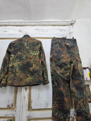 Completo originale tedesco Flecktarn del 1995, composto da giacca e pantaloni. - Fantasia mimetica Flecktarn. - Anno di produzione 1995. - Giacca con tasche frontali. - Pantaloni con tasche cargo.