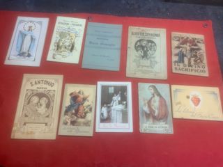 10 pezzi originali d'epocaIl lotto include: Piccoli Manuali: Istruzioni e preghiere per i devoti di Maria SS. del Carmelo e un libretto dell'aggregazione "Madonna del Buon Consiglio" (Chiesa S. Eusebio, Como). Biografie e Catechismo: "Vita del Beato G.B. Cottolengo narrata ai fanciulli" e "Il Divino Sacrificio" di Carlo Carretto. Santini e Devozioni: Litanie della Madonna, Litanie del Sacro Cuore, Sant'Antonio da Padova (Fede e Popolo, Ravenna) e immagini di Gesù Misericordioso. Rarità: Santino fotografico "La S. Messa" con preghiera sul retro del Santuario Parrocchia S. Cuore di Bologna (Salesiani).Circa anni '30 - '50.