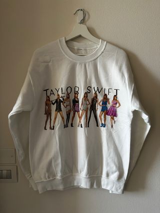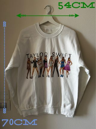 This item is brand new, I never wore it. It retails for 75 euro, and if you’ve bought from Taylor’s store, you are well aware of the huge shipping fees…. So this item is a bargain! 👏🏼 WHITE CREWNECK FEATURING "TAYLOR SWIFT" AND 1989 (TAYLOR'S VERSION) ERAS ILLUSTRATIONS PRINTED ON FRONT. STANDARD FIT. 50% COTTON, 50% POLYESTER