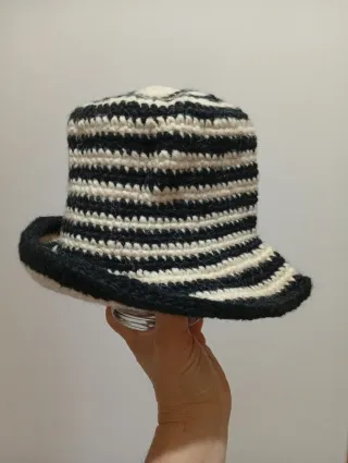 Cappellino con un design a righe bianco e nero - Motivo a righe orizzontali. Taglia unica Nelle ultime foto trovate le misure