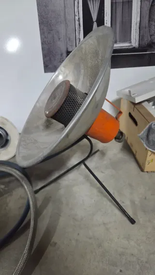 Stufa a gas per esterni, ideale per riscaldare ambienti. - Struttura in metallo. - Design a cono. - Supporto a tre gambe.