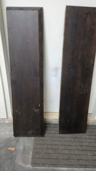 Set di due mensole in legno scuro, perfette per aggiungere un tocco rustico alla tua casa. - Materiale: Legno - Colore: Marrone scuro