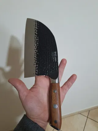 Coltello da chef di alta qualità con lama martellata e manico in legno. - Lama in acciaio inossidabile. - Manico ergonomico in legno. - Design martellato per un'estetica unica.